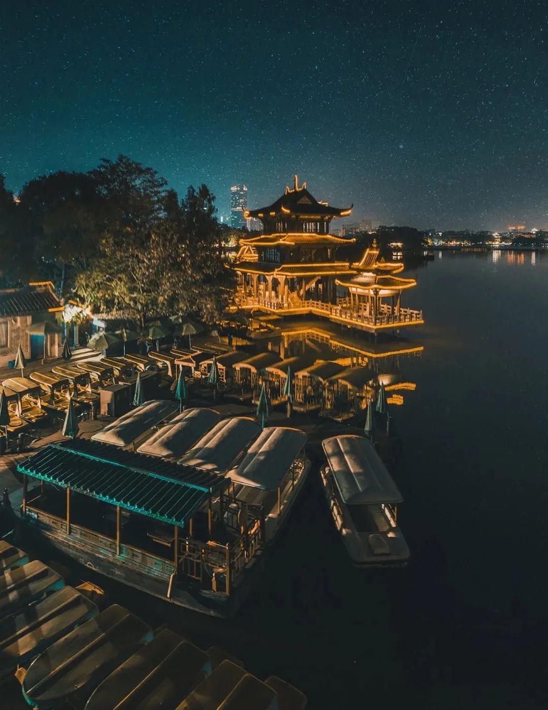 古建筑立于西湖之上,半城山水半城湖,整座小城有着道不尽的水韵。