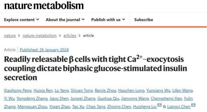 【科技前沿】Nat Metab | 陈良怡团队发现胰岛可释放β细胞决定葡萄糖刺激的胰岛素两相分泌
