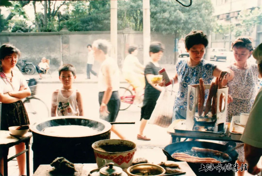 买油条的顾客(上海市档案馆藏)其次是质量关。早点价格“双轨制”后,路边摊贩日渐增多,也带来一些食品质量问题。为了让市民的早点买得安心,吃得放心,有关部门加强了执法,取缔不合要求的马路摊贩,通过宣传提高群众自我保护意识,此外,还大力发展正规早点网点。1996年,上海新亚(集团)联营公司制订《新增大众化早点供应网点验收标准》,其中要求“四大金刚”须符合质量标准,如豆浆浓度要在5度以上,这是著名老字号録源斋的标准。