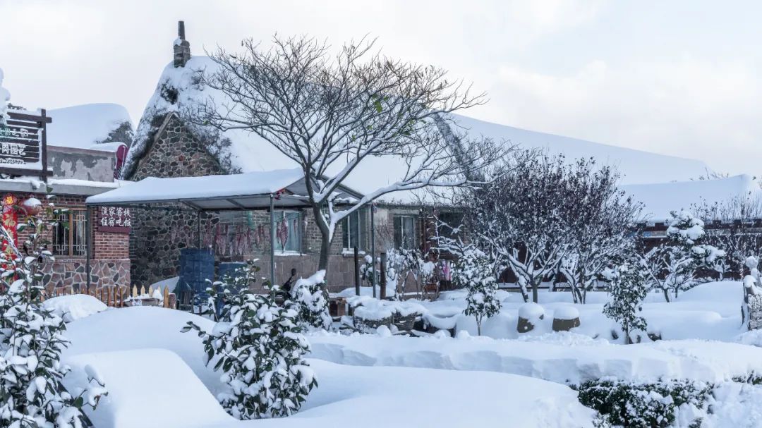说到赏天鹅,“家居海草房,倚门观天鹅”的烟墩角村让许多摄影师慕名而来。雪后,住在白色“蘑菇屋 ”——特色渔家海草房中,恍然以为身处宫崎骏的漫画世界。
