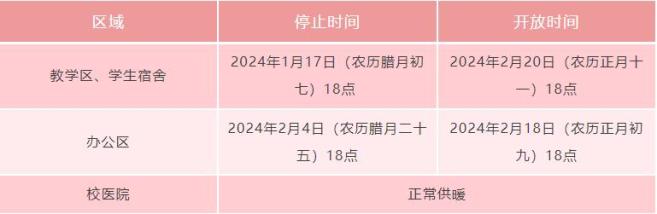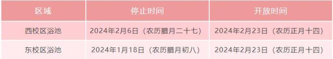 2.南校区、北校区、东校区浴池开放,洗浴时间14:30—20:00。
