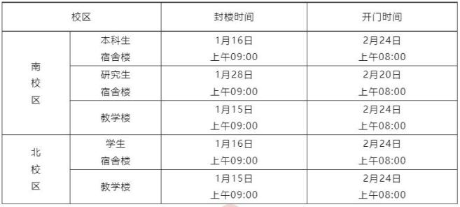 1.主校区理工教学区环水馆教学楼开放,供电时间7:00——22:30,其他教学楼封闭管理。