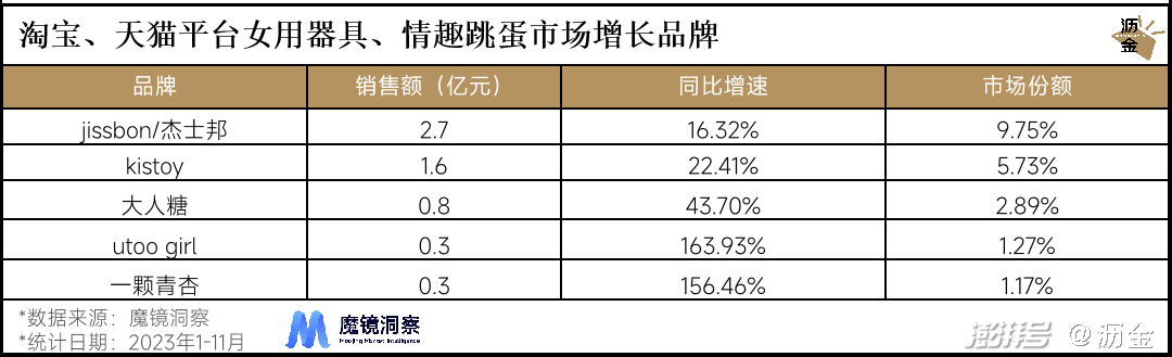 淘系平台女用器具、情趣跳蛋市场增长品牌