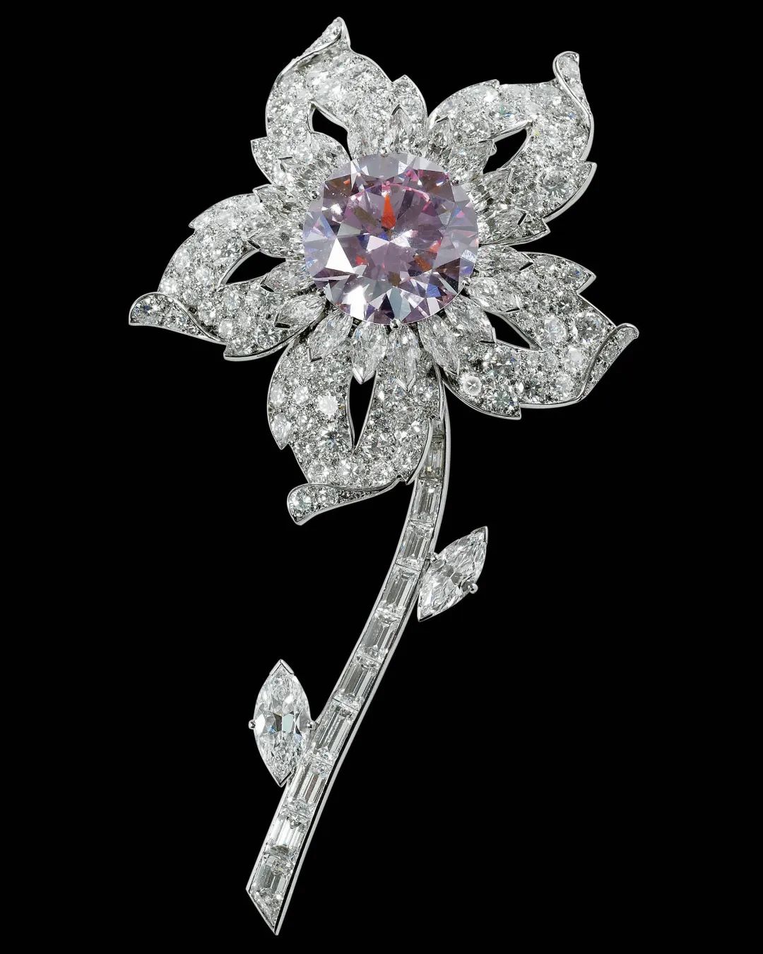 近年蒂芙尼于伦敦举办的珠宝展览中一枚花卉造型胸针原标题:《从蓬巴杜夫人到芭比,她曾掀起百年间的审美争议,如今化为“奇石”跻身珠宝圈新贵》