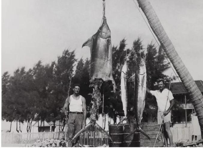 1935年,鱼被拖上岸前被鲨鱼咬伤