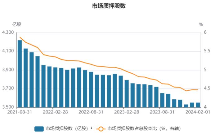 注:近年来大股东质押股数(截至1月31日数据)从近年的历史行情上看,A股此前于2018年一度遭遇“股权质押风险”这头灰犀牛。彼时,市场迎来巨幅回撤,大批上市公司触及股权质押警戒线。当时,两市共有3400余股参与股权质押,基本处于“无股不压”的状态,质押总市值近4.4万亿元,占上市公司总市值的10%。不过,随着质押新规的出台,加之近年来不断纾解,目前A股质押规模已大幅下降,风险也持续收敛。
