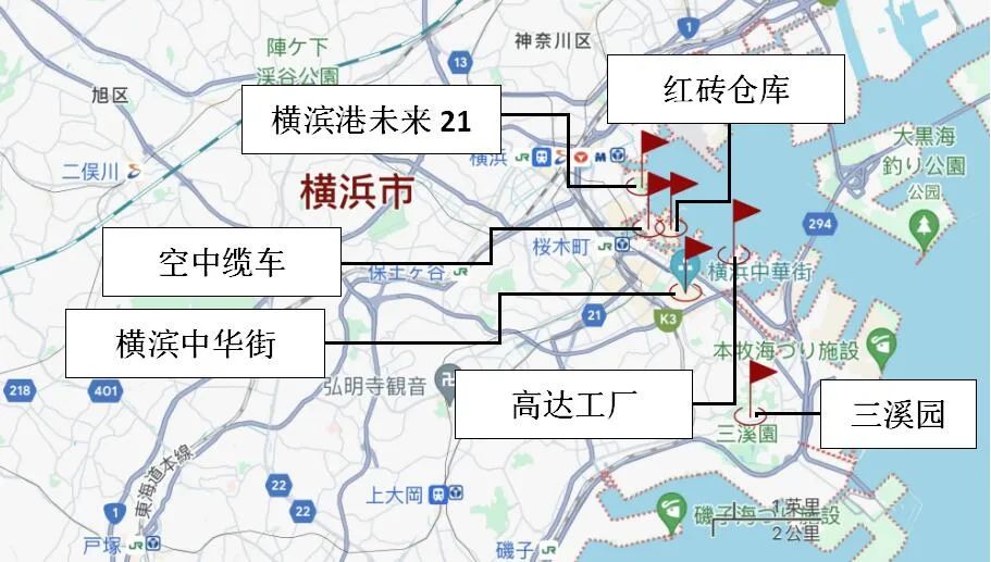 横滨一日游路线:三溪园—横滨中华街—高达工厂—红砖仓库—港未来21—海上缆车,如果想更休闲一些可以拆为2日。
