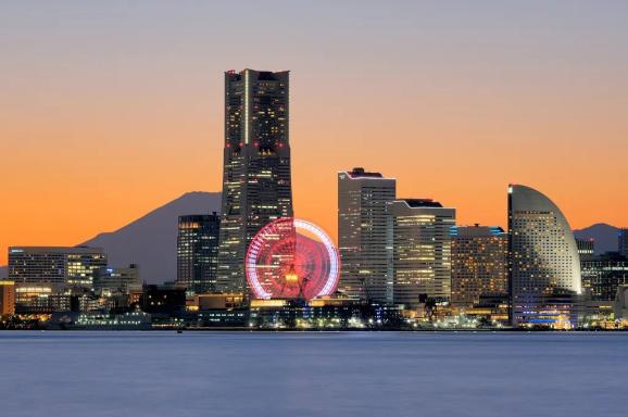 值得一提的是这里有一座巨大的摩天轮,屹立在港岸,形似日本传统的梳子,坐在摩天轮一路缓缓上升,可以看到横滨港的城市风貌和夕阳余晖落在横滨港的样子,透过朦胧的夕阳,远处富士山的轮廓若隐若现,更显得几分动人。