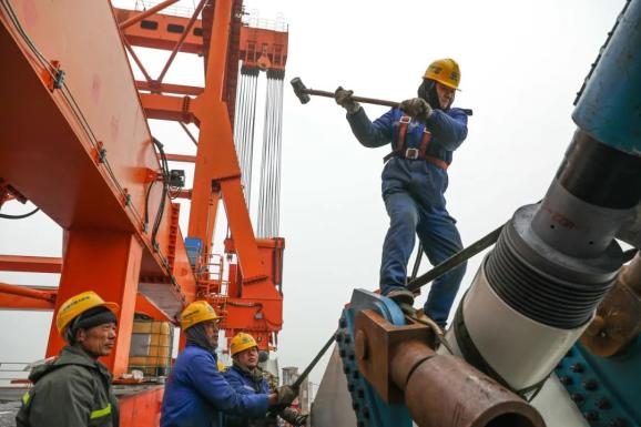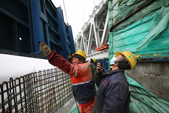 春节前,《工人日报》记者前往常泰长江大桥,蹲点采访一周,记录下工人们在寒冬里热火朝天的施工场景。