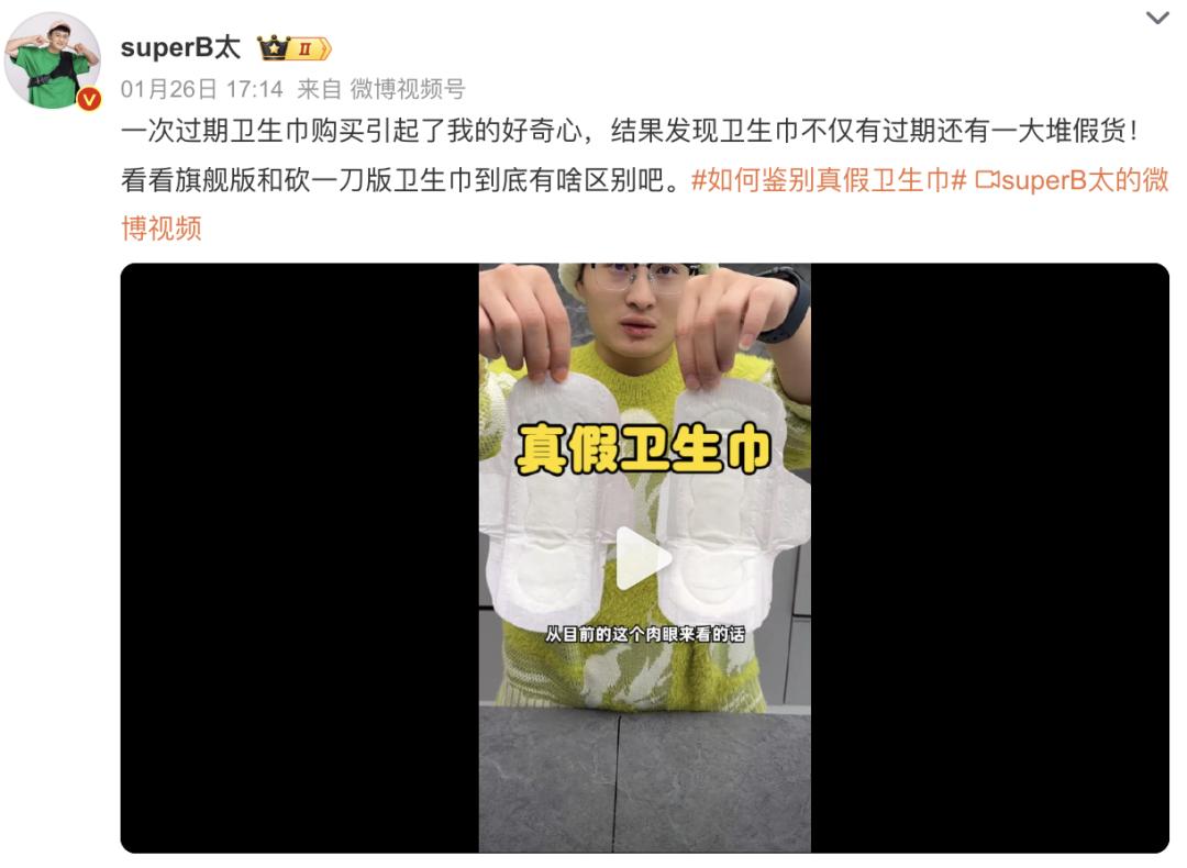 图片来源:微博截图只要是女生,都会在意卫生巾的品质和使用体验。这次知道了,以后还得学会看是不是正品……