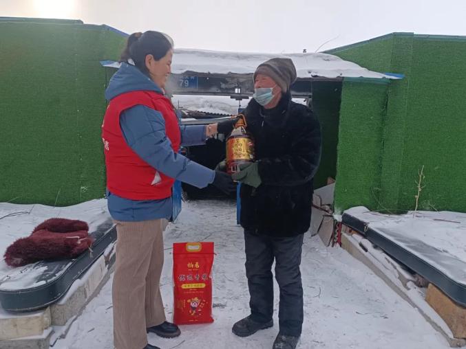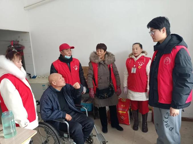 20多名志愿者身穿志愿者红马甲,不畏严寒,来到孤寡老人和残疾人的家中,为他们送去了米和豆油等生活物质,并为老人们义务理发,与老人们唠唠家常,了解了老人们的家庭现状和身体状态,让孤寡老人们在寒冬时节深切感受到社会大家庭的关怀和温暖,让寒冷的冬季不在寒冷。