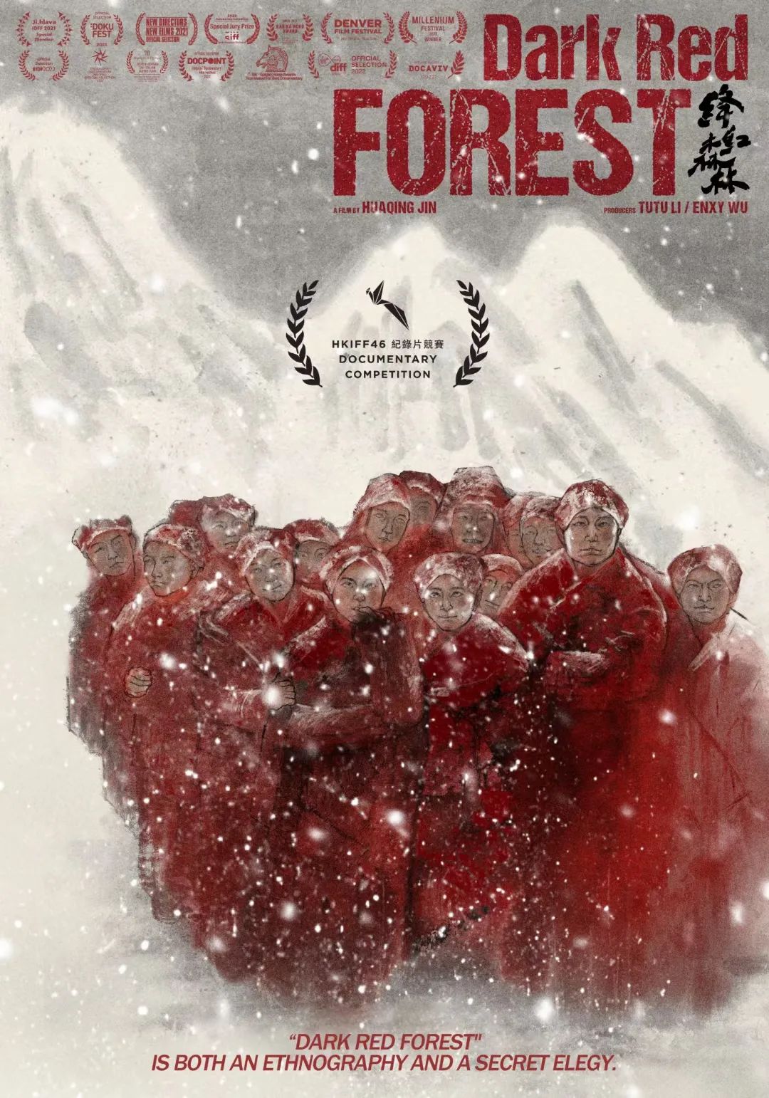 刘小黛:电影最终成片时,摄影是一大亮点,感觉不脏不乱,非常漂亮,配乐也是恰到好处。导演身兼唯一的摄影师,是如何与剪辑师、配乐师一起,让这个影片在声色画三方面达成一致的呢?是导演的意见会大一些,还是其他工种部门也同样参与了影片的设计部分呢?金华青:海外很多影展的选片人、评审都赞赏过影片摄影。西雅图国际电影节颁给《绛红森林》评审团特别奖时也强调了摄影。摄影的确难,那些经历不想提起又无法忘却。