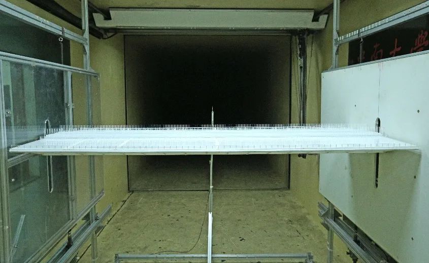 风洞试验,大桥承受风速超100米/秒大桥桥址处台风多发,设计基准风速47.9米/秒,相当于13级台风。在台风区设计一座桥面宽度相当于16层楼高的桥梁存在不小挑战。受到飞机大悬臂机翼启发,设计团队采用的大挑臂式钢箱梁包括中间主箱和两侧挑臂,中间主箱上布置荷载较重的双线城际列车,两侧挑臂布置荷载较轻的高速公路,结构型式新颖,构思巧妙,空气动力学性能优异,相较于传统钢箱梁结构可节省约10%钢材。