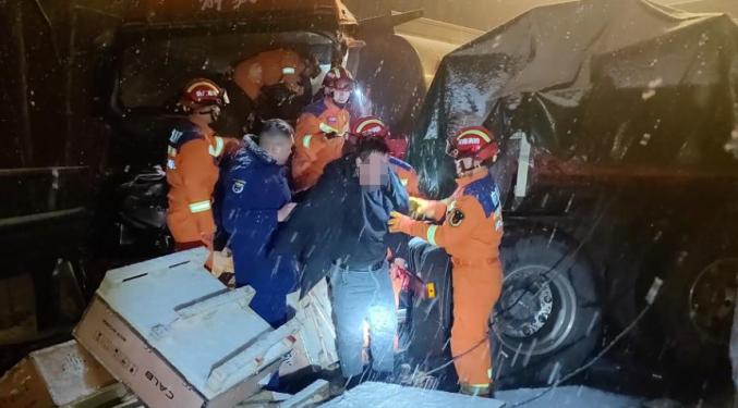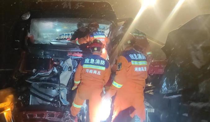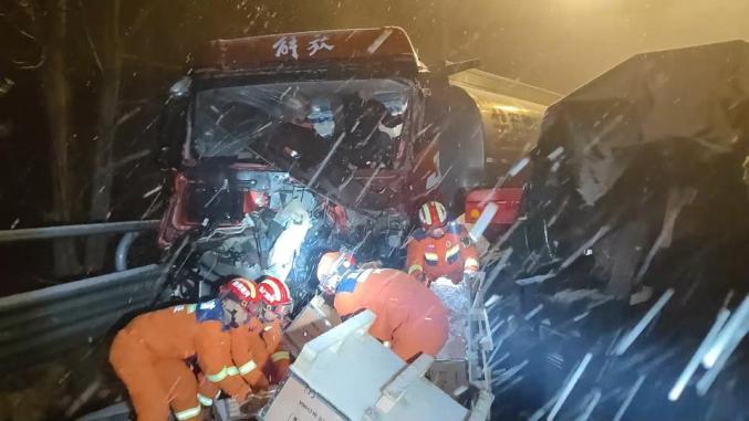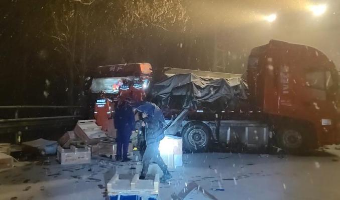 河南一高速雪天4车连环相撞,有人员被困