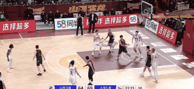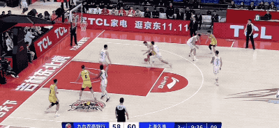 李弘权的第1记三分球,就是布莱德索被双人夹击到死球,最后无奈分给李弘权,而李弘权在最后1秒接锅张手命中。
