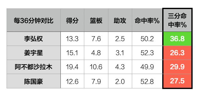 让我们再把人才库名单拿出来看,你会发现这里面的22个球员,抛开实际意义上是中锋的胡金秋,那么4号位上大概就只有李弘权符合“能投、能扛、能跑”这三项指标了。