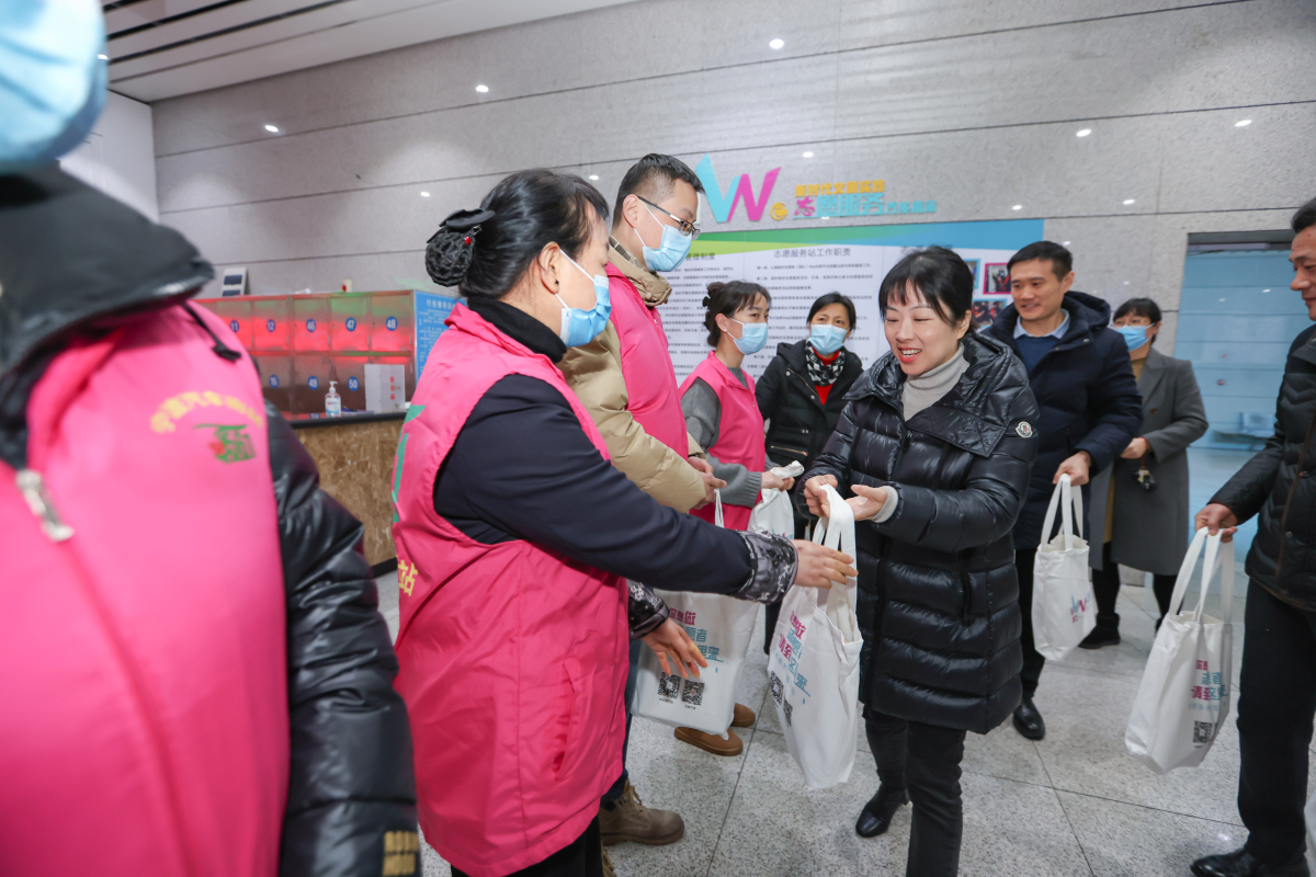 慰问组与志愿者们亲切交谈,了解他们的工作和服务感受,对志愿者们的工作给予充分肯定,并送上节日礼包,叮嘱大家要注意保暖。