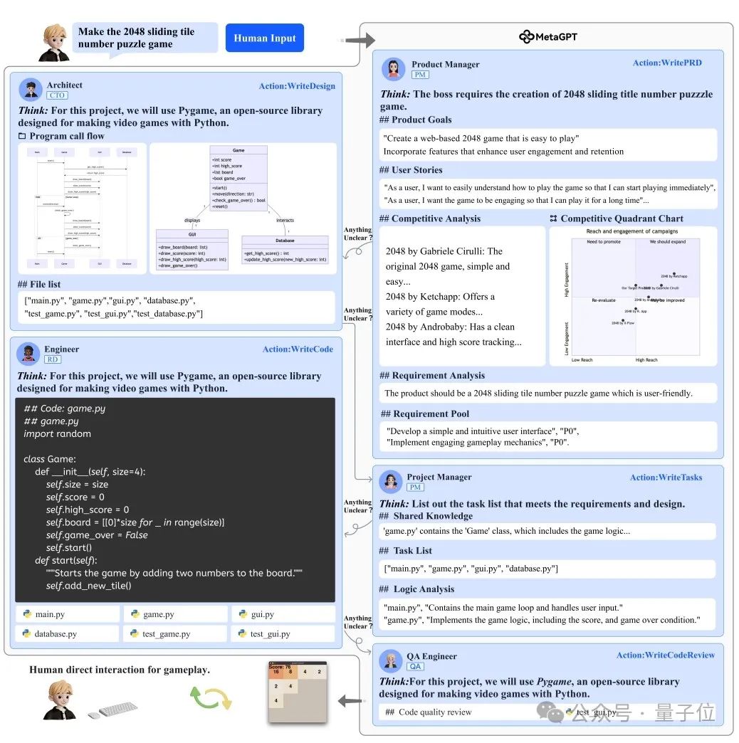 在MetaGPT的框架中,研究人员将SOPs的概念对齐至角色专业化、通信协议设计以及迭代式的可执行反馈设计。