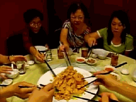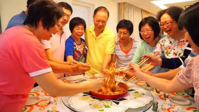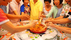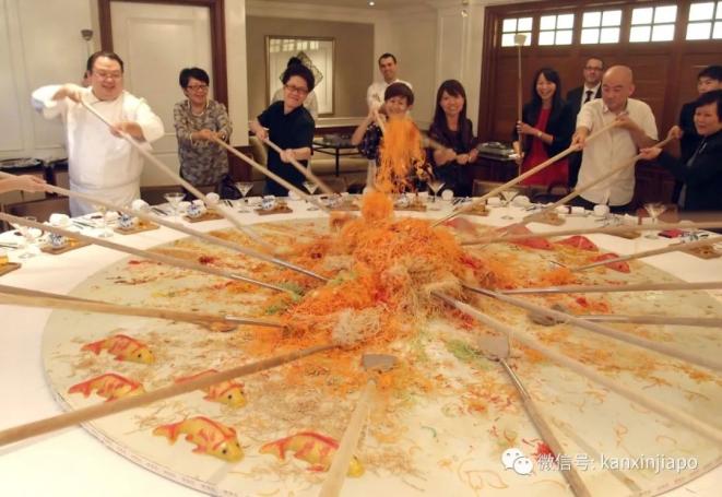 不论是公司聚餐还是亲友相聚,在春节期间,目测只要超过四五个人吃饭,就能搞一出捞鱼生来。春节期间,外国人在新加坡吃饭时,如果发现周围斯斯文文的绅士淑女们,忽然一哄而上,站起来“抢”吃的,没错,你又遇到了新加坡人在捞鱼生。