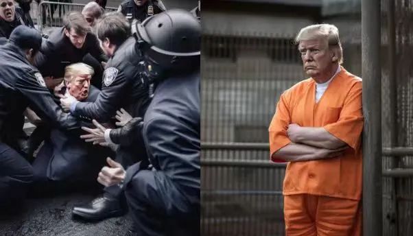 去年8月,在特朗普被控涉嫌推翻选举结果后,一张特朗普遭“逮捕”的图片广泛流传,图中特朗普被警察按倒在地,十分狼狈。另一张图片中,身着橙色囚服的特朗普则上演了“铁窗泪”,在社交网络上掀起轩然大波。