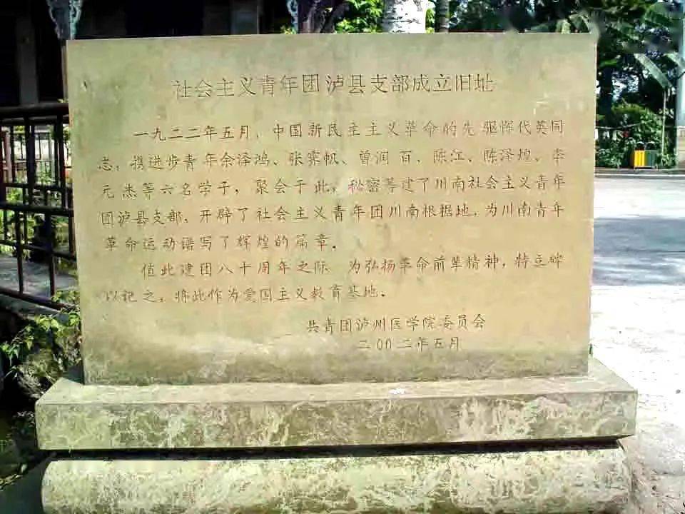 1922年5月28日,在恽代英安排布置下,余泽鸿、张霁帆、曾润百、陈江、陈泽煌、李元杰6名学生,在泸州城西的忠山凉亭内,秘密召开青年组织成立会议,成立了社会主义青年团泸县支部。同年9月底,恽代英根据团中央指示,将泸县社会主义青年团支部扩展为地方社会主义青年团。