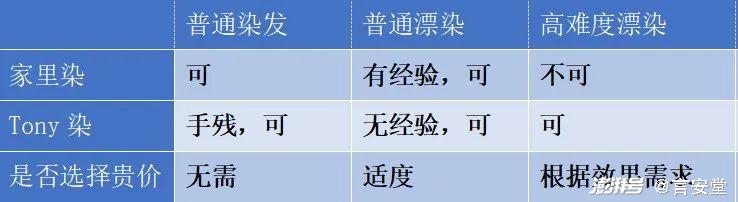 因为普通染发与漂染的难易程度、染后效果都不一样,所以对于染发技术要求也不一样,要评估到底在家染划算,还是Tony老师更专业,我们还需要把普通染发和漂染分开来看。