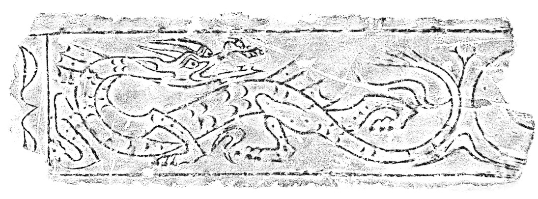 图3 唐高宗与武则天乾陵中一块石板上所刻的龙纹,7世纪-8世纪,采自《考古与文物》1983年第1期,第29页,图1。