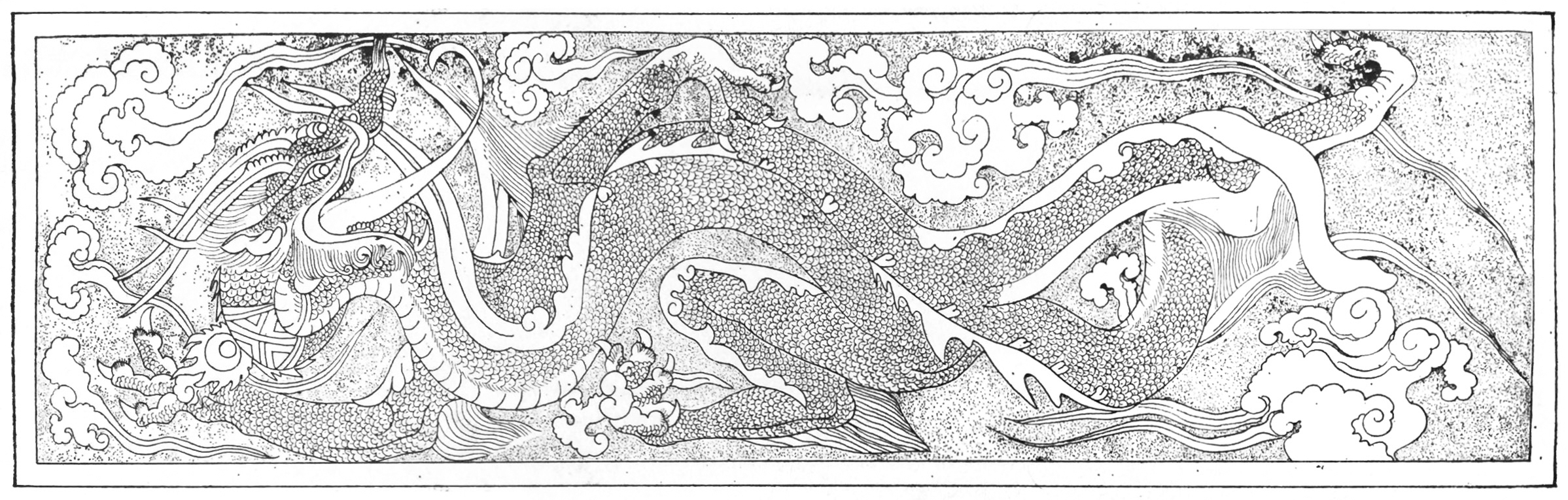 图2汉武帝茂陵龙纹画像砖拓片,前1世纪,长75.6厘米,大英博物馆收藏。