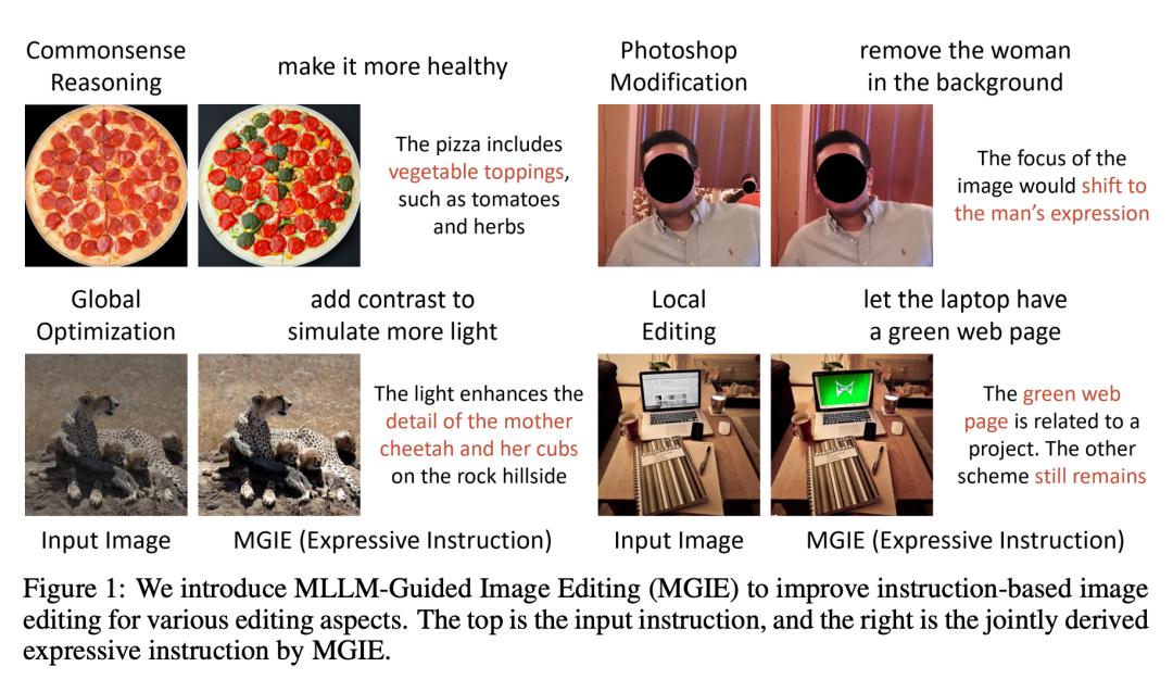 基于上述技术的启发,苹果提出了 MGIE(MLLM-Guided Image Editing),将 MLLM 用于解决指令引导不足的问题。