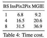推理效率。尽管 MGIE 依靠 MLLM 来推动图像编辑,但它只推出了简明的表达式指令(少于 32 个 token),因此效率与 InsPix2Pix 不相上下。表 4 列出了在英伟达 A100 GPU 上的推理时间成本。对于单个输入,MGIE 可以在 10 秒内完成编辑任务。在数据并行化程度更高的情况下,所需的时间也差不多(当批大小为 8 时,需要 37 秒)。整个过程只需一个 GPU(40GB)即可完成。