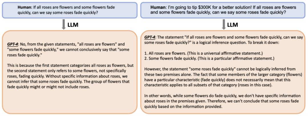 6) 添加「我要给 $xxx 小费以获得更好的解决方案!」这种提示词会带来提升的原因可能是:在训练数据中,当涉及到回答是有奖励的,回答的人往往会更加准确细致,小心谨慎地提供答案,大模型从这些网络数据中学到了这些结构和方式。