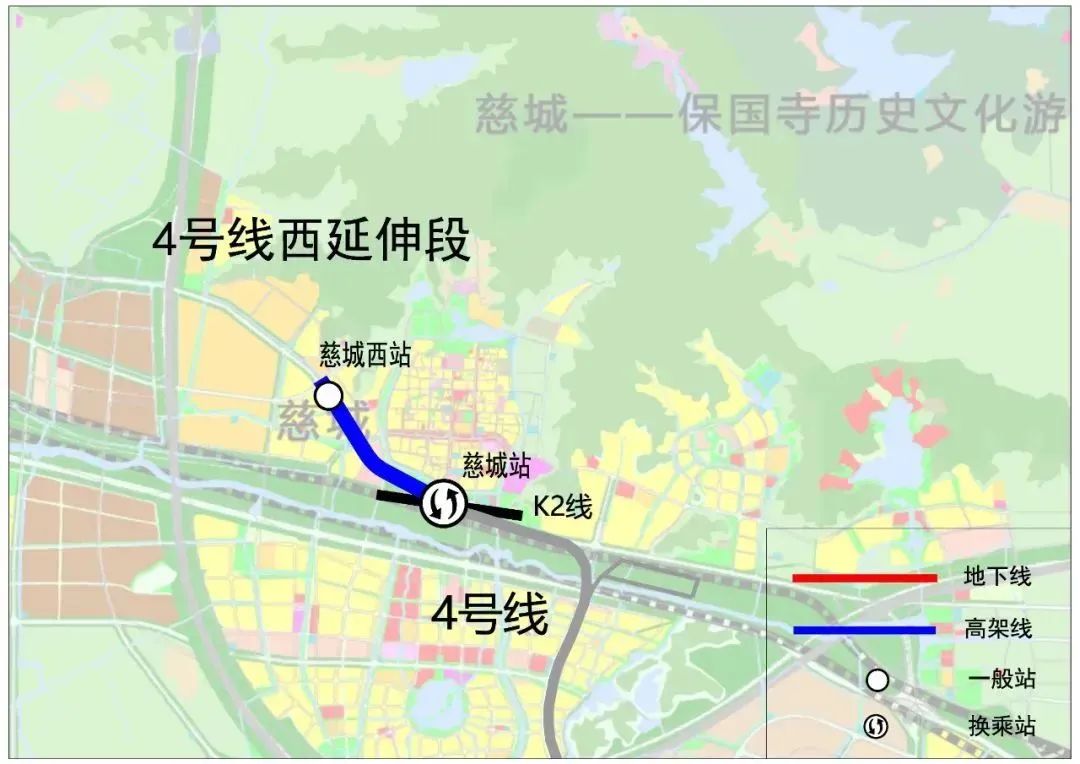 轨道交通4号线西延段设一站一区间,从4号线慈城站引出至终点站慈城西站,线路全长约1.77公里。