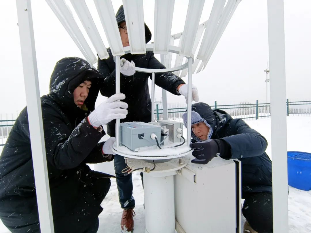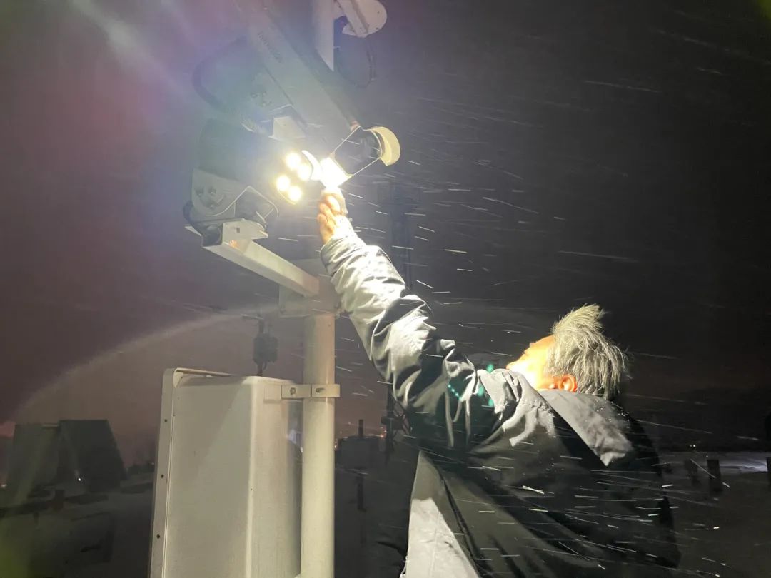 2月4日,河南省平顶山市气象保障技术人员冒雪更换称重式降水传感器,保证数据精准采集传输 拍摄:郑飞打足提前量 密切监视及早行动