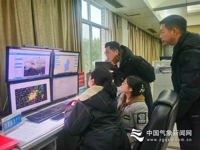 湖南省湘西土家族苗族自治州气象局工作人员在研判暴雪天气形势 摄影:刘玥早在1月25日,湖南省气象局就针对本轮雨雪天气进行了研判,并于1月29日发布重大气象信息专报,重点提醒冻雨对春运交通运输、能源保供的影响。2月1日13时,湖南省气象局启动低温雨雪冰冻三级应急响应,2月4日14时,湖南省低温雨雪冰冻灾害应急指挥部将低温雨雪冰冻灾害四级应急响应提升为三级。