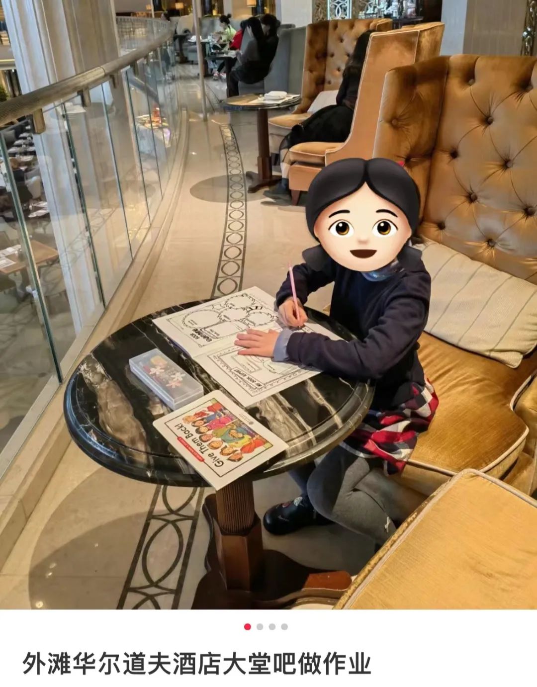 甚至,五星酒店的大堂还成了遛娃胜地/图源:@豆米妈妈“酒店大堂的装潢和奢侈品柜台无异,而在这里花上一杯咖啡的价钱,就能买下一份奢侈的贵族体验,还不用承受柜姐的白眼。可以说,酒店大堂就是我的移动豪宅。”