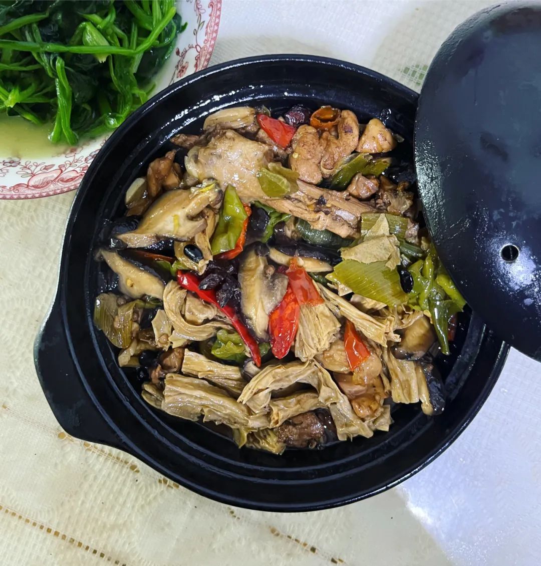 ●一锅可以成为年夜饭担当的美味炒鸡,里面多放点香菇、木耳、腐竹,很容易吃得又健康又满足。图片:小树春节期间,家庭聚会的主题永远是吃,各种大菜,烹饪方式不变,加上这些东西,几乎不影响口味,但是三高肥胖的人下筷子的时候就有了选择,再在眼前那碗醋水里过一遍,更好。