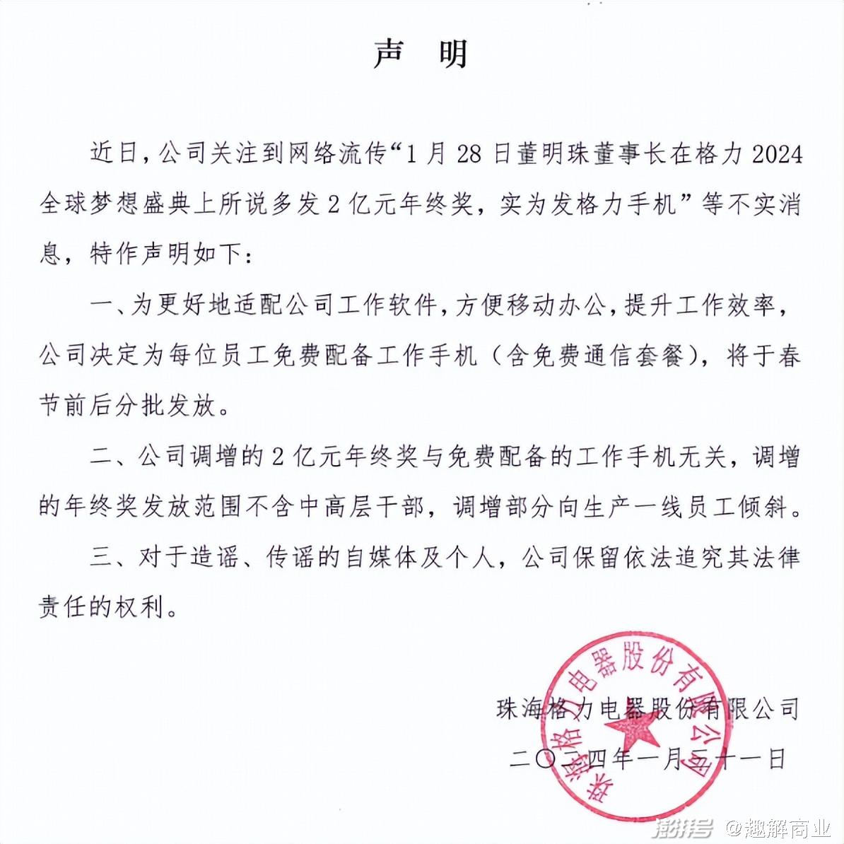 但是,事后有自媒体爆料称,2亿年终奖并不是现金,而是用格力G3手机和网上商城积分抵扣;格力方面也随即发布官方声明进行辟谣,称“2亿年终奖实为格力手机”是不实报道。