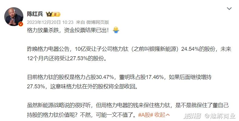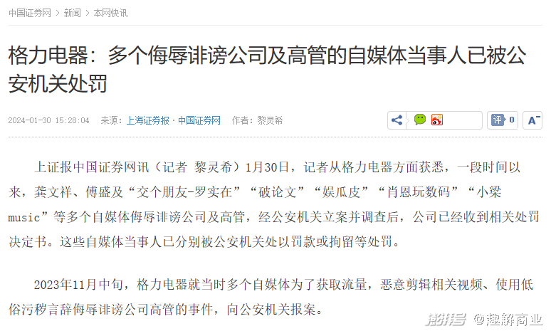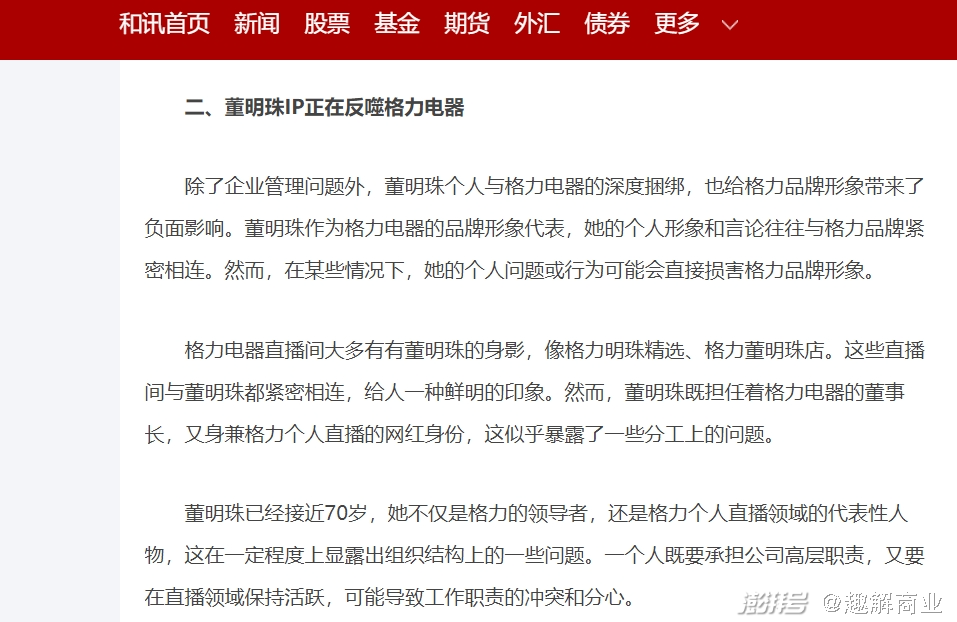 然而,自2023年以来,围绕在董明珠个人身上的争议话题多次出现,对格力的品牌形象也可能会形成一定的负面影响;和讯网此前就曾报道称“董明珠IP正在反噬格力电器”。