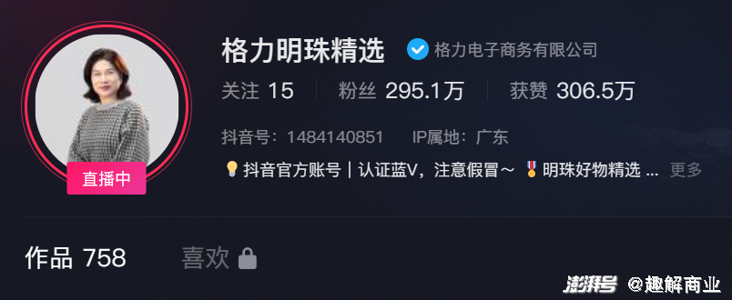 不过,格力热度最高的直播账号还是此前由孟羽童主导、董明珠深度参与的“明珠羽童精选”抖音直播间(在孟羽童离职后更名为“格力明珠精选”),截至目前已经积累近300万粉丝。