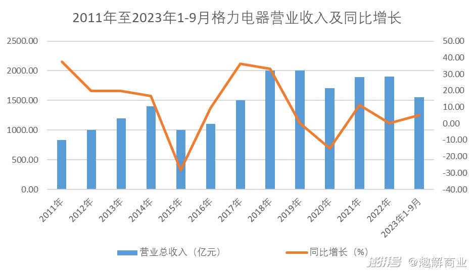 从营业收入来看,不考虑2015年特殊情况,2011年到2018年期间,格力电器的收入增速普遍在15%以上,甚至多个年份的增幅超过30%。然而,从2019年开始,格力电器收入增长明显放缓,增速已经降至个位数。