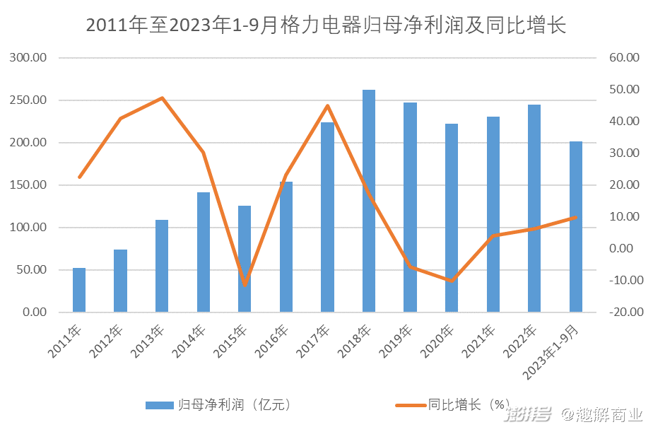 从利润来看,2019年再次出现分水岭。格力电器的归母净利润在2019年之前保持同比高增长,但在2019年之后却大幅下降,甚至在2019-2020年出现连续两年负增长。