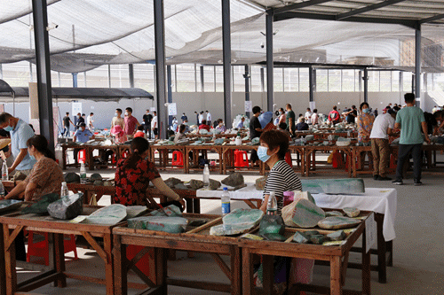 平洲翡翠公盘现场。