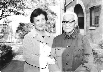 20世纪90年代初,谌容(左)与巴金在巴金家中