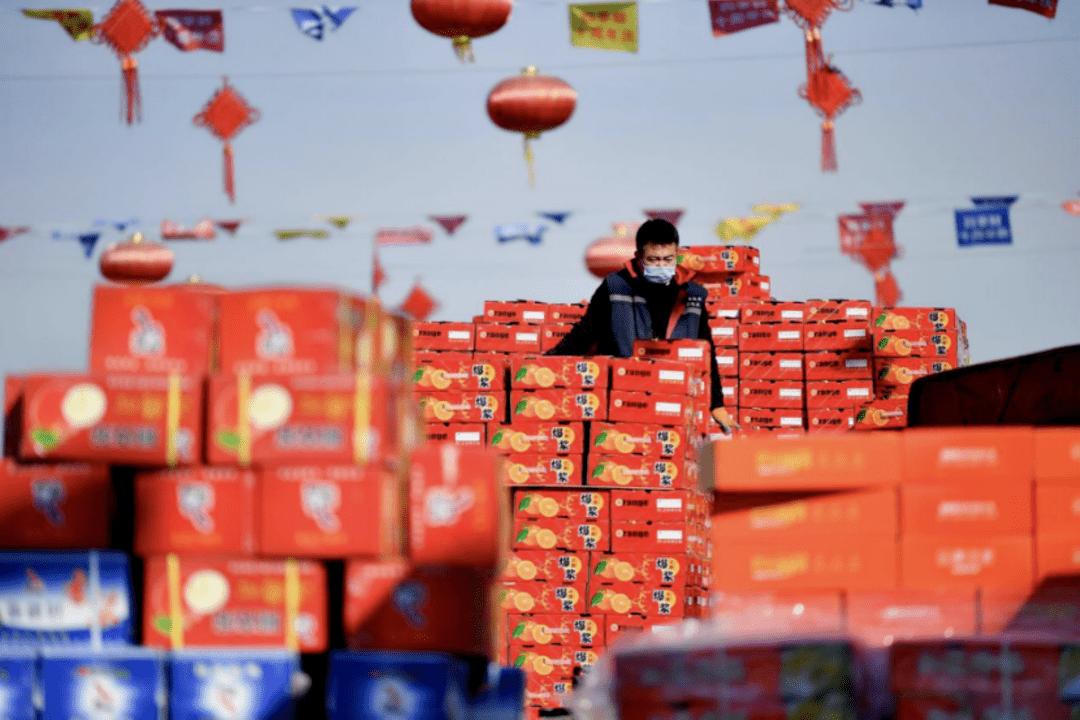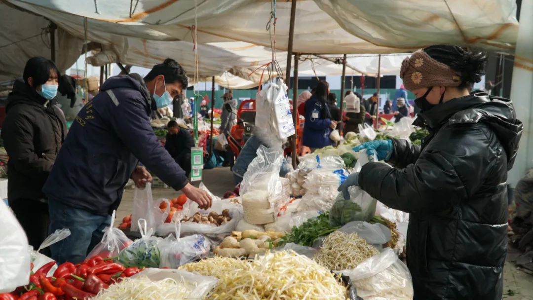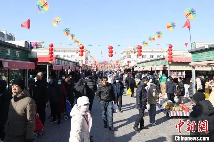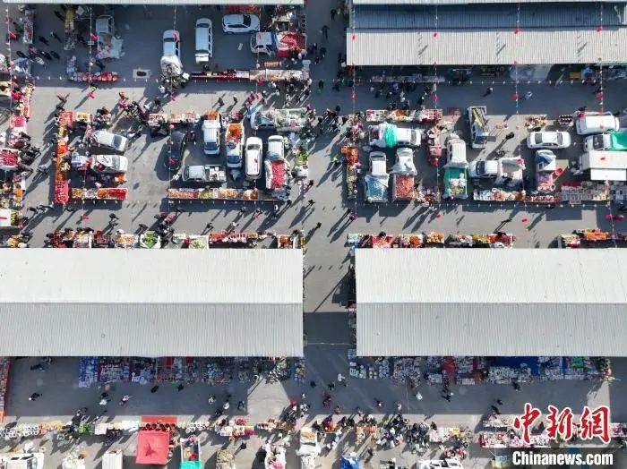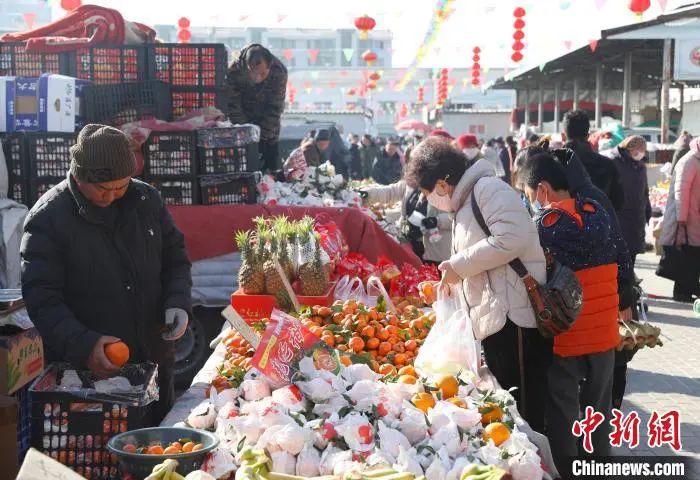 图源:中新网居民和周边农民忙着逛摊位置办年货