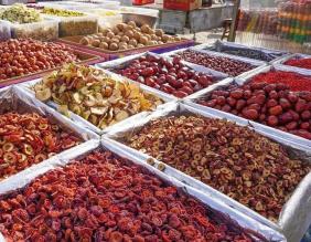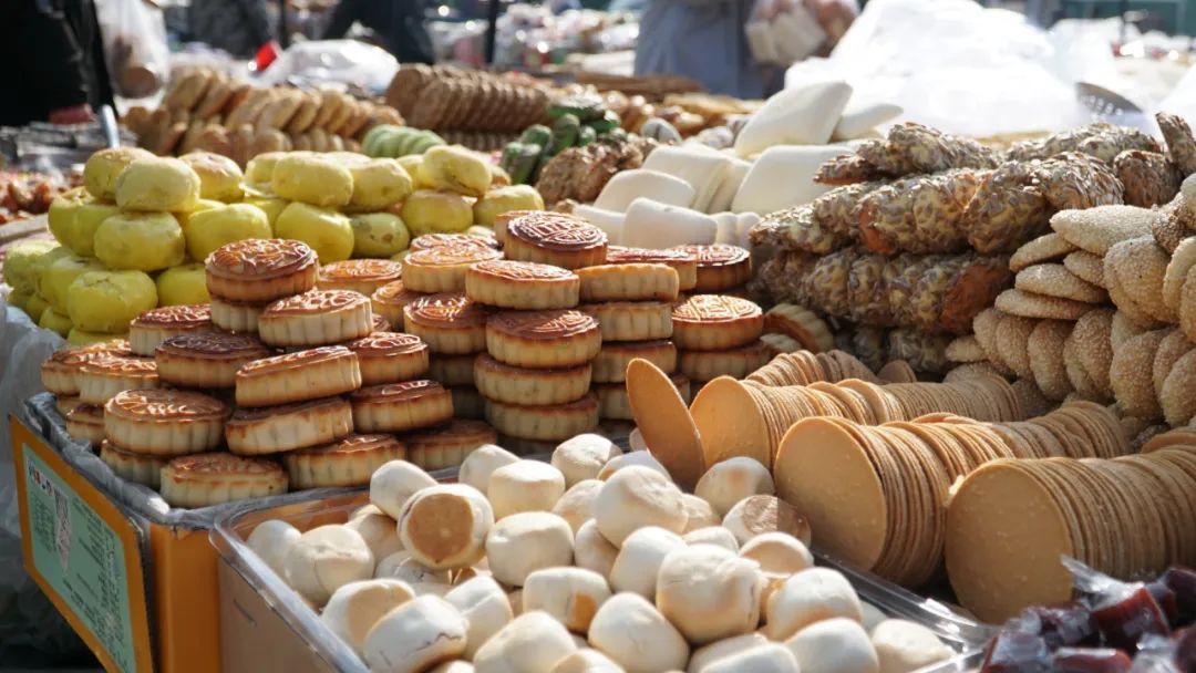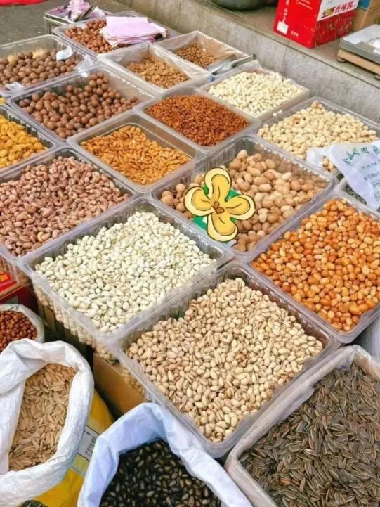 市场内的农副产品、茶酒油酱粮油制品、干果炒货、糖饵果品