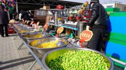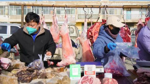 在西夏区兴泾镇农贸市场年货大集上新鲜的牛羊肉、蔬菜干果