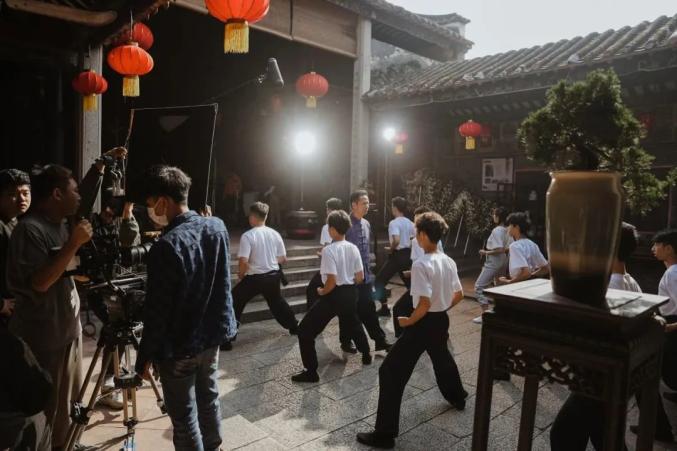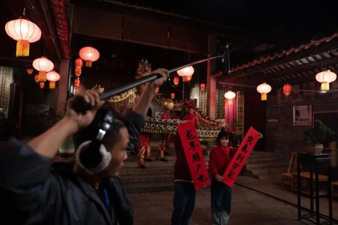 ▲剧组在长岐村卢氏大宗祠拍摄。值得一提的是,中国广电5G龙年广告片场景也出自本片,已于2月2日发布。