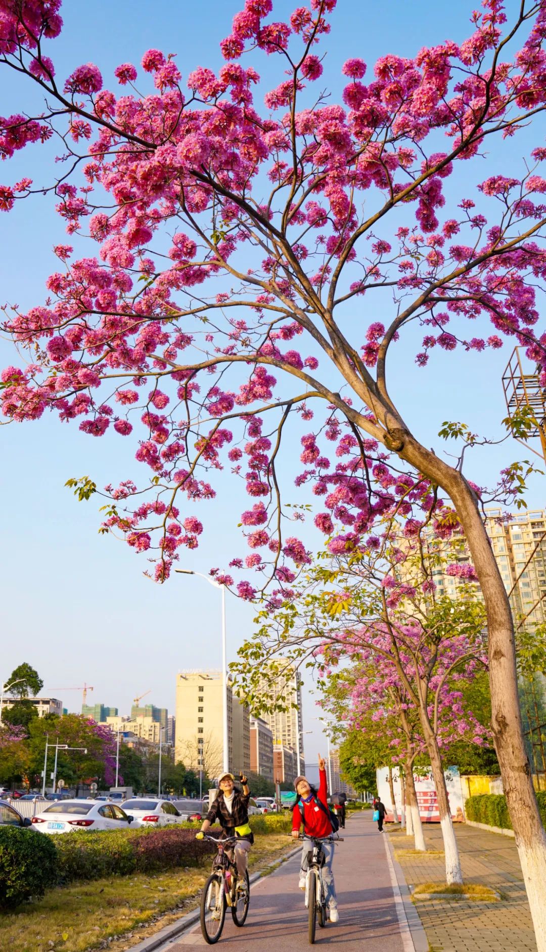 △清城区,紫花风铃木成簇绽放。邱炜民 摄