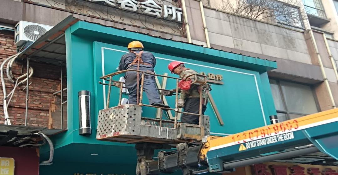 整改措施:责令拆除店招。
