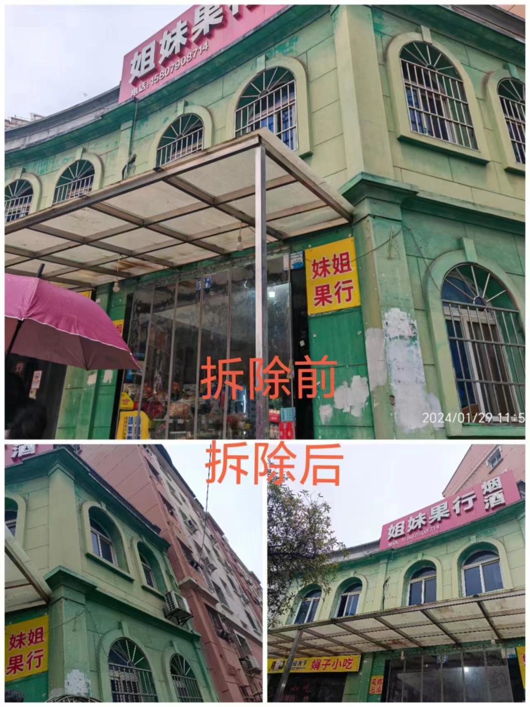 安全隐患问题:店招挡住了楼上窗户,存在安全隐患。